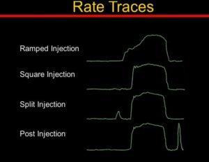 In Caterpillar diesel engines with the HEUI fuel system, cycle rate control is achieved by varying the opening and closing times of the shut-off valve and by varying the time the shut-off valve is open.